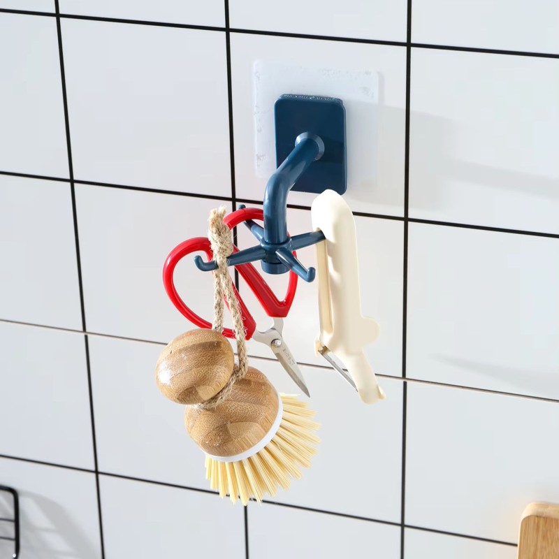 Keep your kitchen neat and organized with this handy hanging hook system! Perfect for maximizing space in small kitchens and other spaces. Novel 360° rotating design comes with 6 swivel hooks for easy access to your utensils. Great for hanging kitchen tools, towels, ties, keys, and other small items. Strong adhesive backing with easy installation. No drilling, no damage! Includes 6 sticky patches for hassle-free setup.